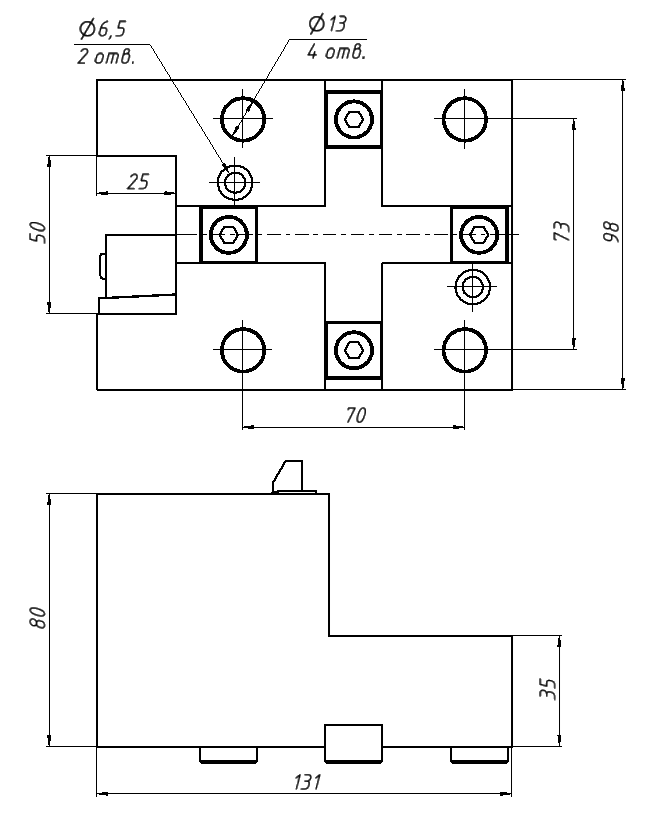 Стационарный держатель инструмента BMT65-C8025 представляет собой инструментальный блок, предназначенный для закрепления режущего инструмента с призматическим хвостовиком шириной 25 мм. Длина зажимаемой части хвостовика – 65 мм.