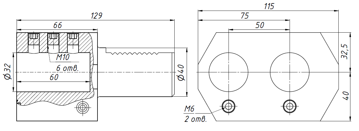 Двойной держатель VDI тип E8 левого исполнения предназначен для закрепления режущего инструмента с цилиндрическим хвостовиком диаметром 32 мм. Размер хвостовика держателя VDI40. Держатель используется преимущественно для фиксации расточных резцов и другого осевого инструмента, где используется наружная подача СОЖ.