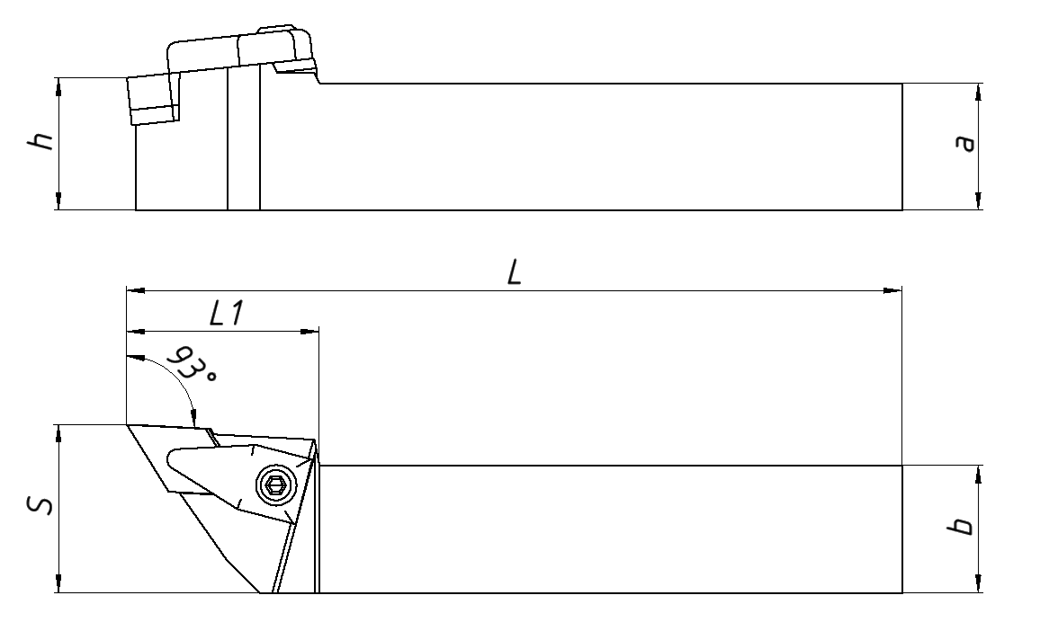 Токарная державка со сменными пластинами, предназначенная для наружного точения. Державка применяется для обработки наружных цилиндрических и конических поверхностей, торцов и уступов.