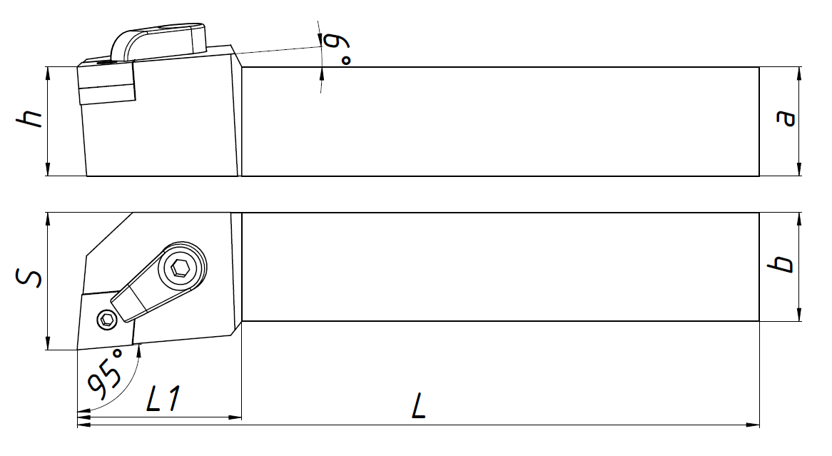 Державка токарная для наружной обработки по металлу со сменными пластинами. Крепление типа M (прижим клин-прихватом сверху). С углом в плане 95°. Предназначена для наружной контурной обработки. Державка совместима с пластинами CN**1606**.