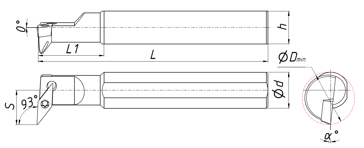 Державка токарная для внутренней обработки по металлу со сменными пластинами. Крепление типа S (закрепление пластин винтом). С углом в плане 93°. Предназначена для растачивания отверстий и контурной обработки. Державка совместима с пластинами VB**1604**.