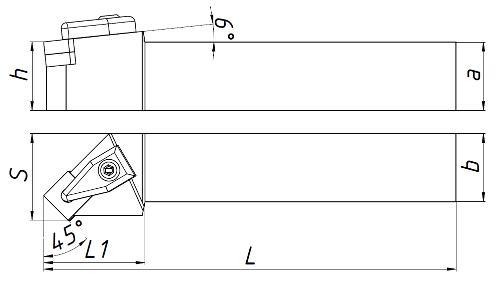 Токарная державка со сменными пластинами, предназначенная для наружного точения. Державка применяется для обработки наружных цилиндрических поверхностей, торцов и фасок.