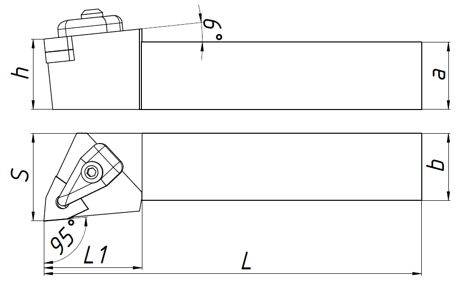Державка токарная для наружной обработки по металлу со сменными пластинами. Крепление типа D (двойной прижим кронштейном). С углом в плане 95°. Предназначена для продольного точения и обработки торца. Державка совместима с пластинами WN**0804**.