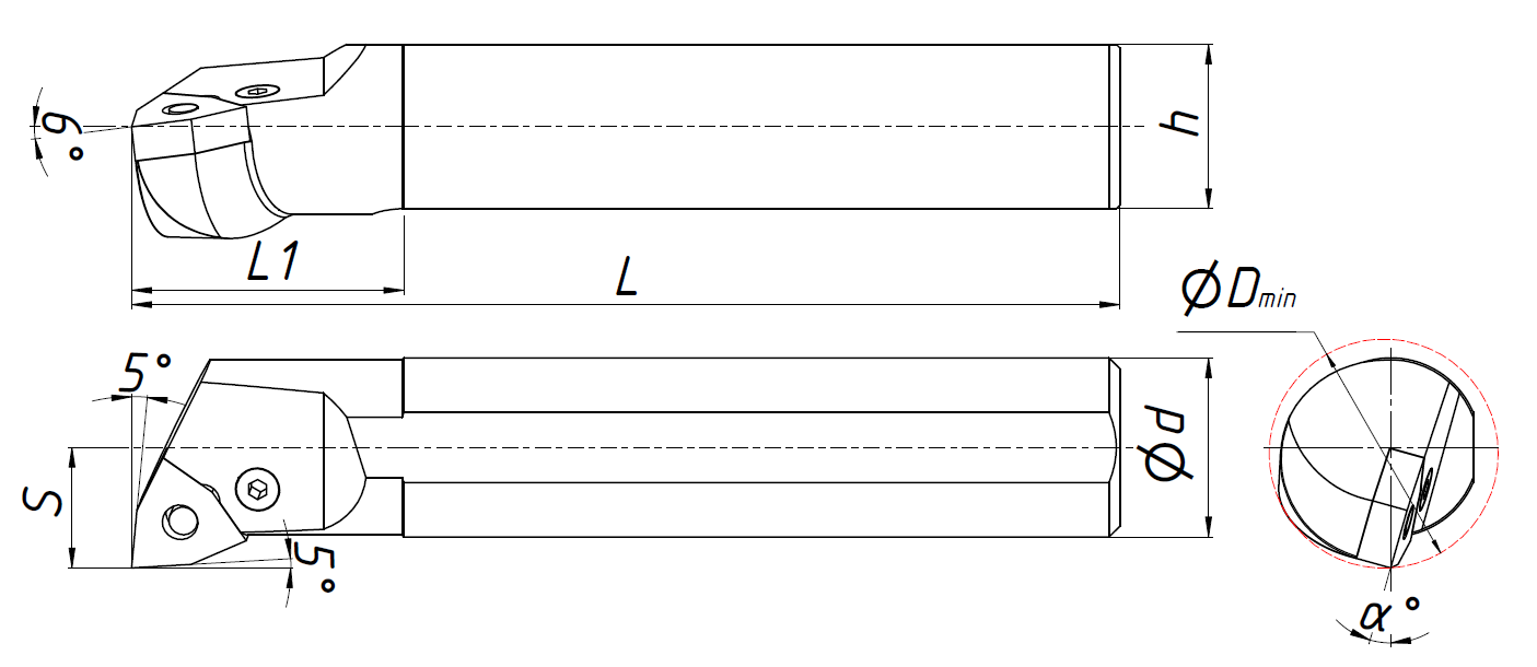 Державка токарная для внутренней обработки по металлу со сменными пластинами. Крепление типа P (прижим рычагом за отверстие). С углом в плане 95°. Предназначена для растачивания отверстий и обработки торца. Державка совместима с пластинами WN**0604**.
