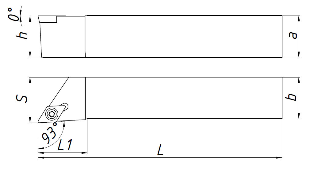 Державка токарная для наружной обработки по металлу со сменными пластинами. Крепление типа S (закрепление пластин винтом). С углом в плане 93°. Предназначена для наружной контурной обработки. Державка совместима с пластинами DC**11T3**.