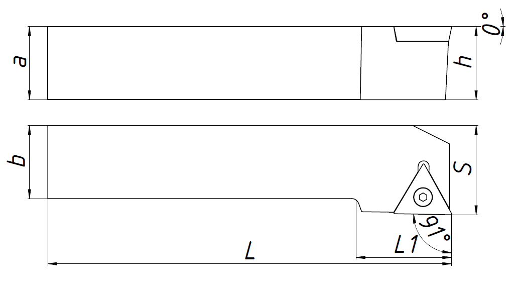 Державка токарная для наружной обработки по металлу со сменными пластинами. Крепление типа S (закрепление пластин винтом). С углом в плане 91°. Предназначена для продольного точения. Державка совместима с пластинами TC**16T3**.