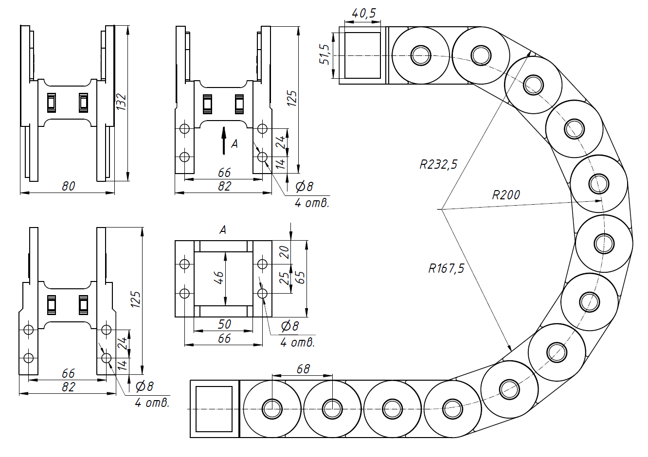 Гибкий пластиковый кабель-канал (кабельная цепь) открытого типа. Изготовлен из пожаробезопасного пластика. Внутреннее сечение - 45х50 мм. Радиус изгиба - 200 мм. Указана цена за метр.