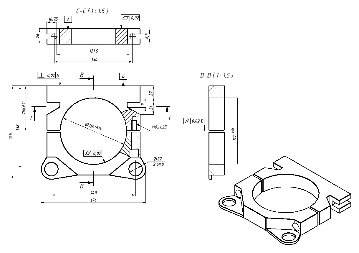 Крепление шпинделя выполнено в виде двух алюминиевых хомутов, изготовленных путем механической обработки, с соблюдением параллельности поверхностей и соосности отверстий.