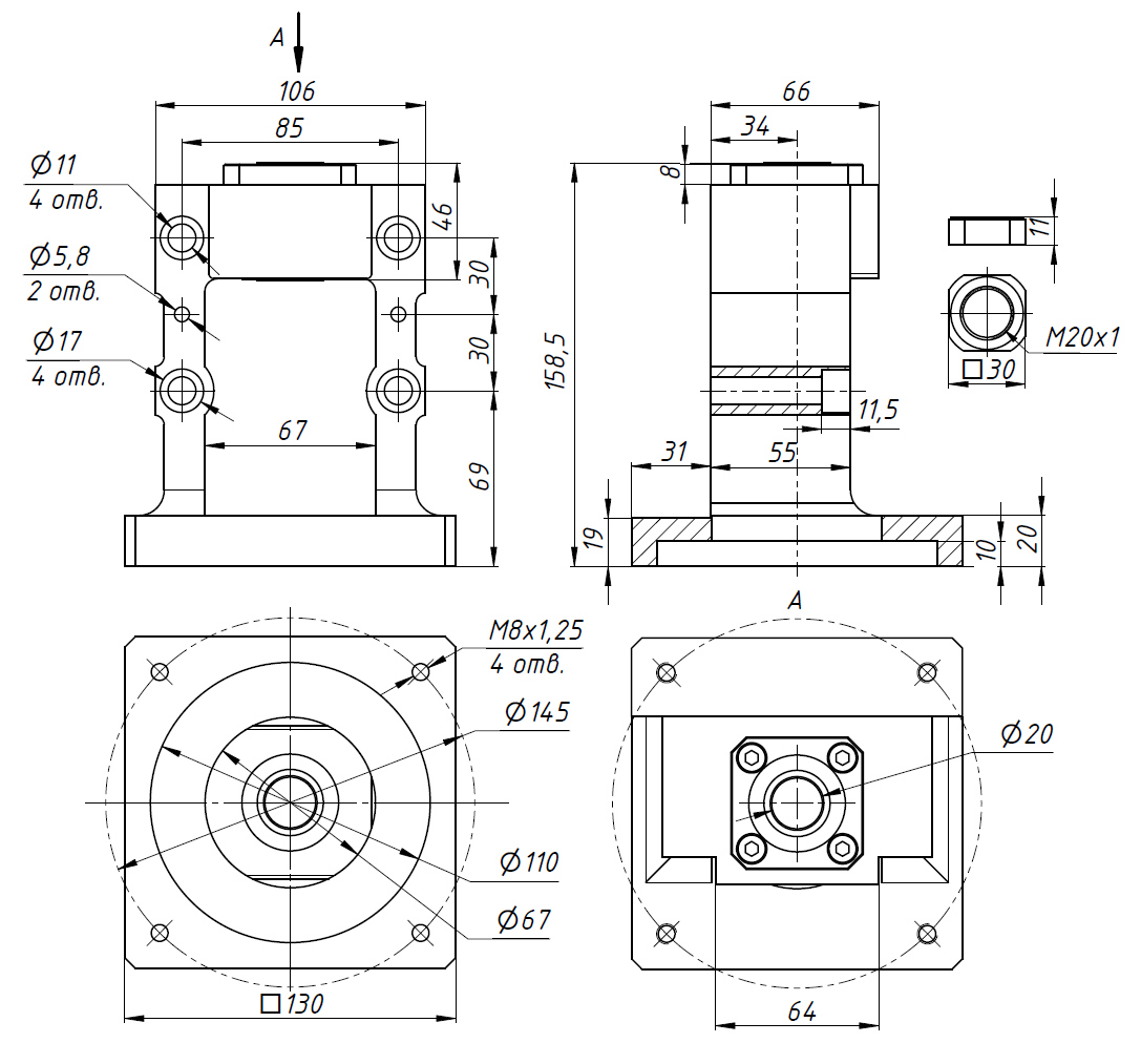 Держатель (кронштейн) HM20-130 C5 (С5 - радиально-упорный подшипник) для для монтажа двигателей с фланцем 130 мм и ходового винта SFU3205/SFU3210/SFU3232. Одна сторона кронштейна соответствует фланцу серводвигателя 130 мм, другая содержит опору c интегрированным радиально-упорным подшипником BK20. Для поддержки другого конца винта подойдет опора BF20. Точность изготовления опор достаточна для использования их с передачами класса C5.