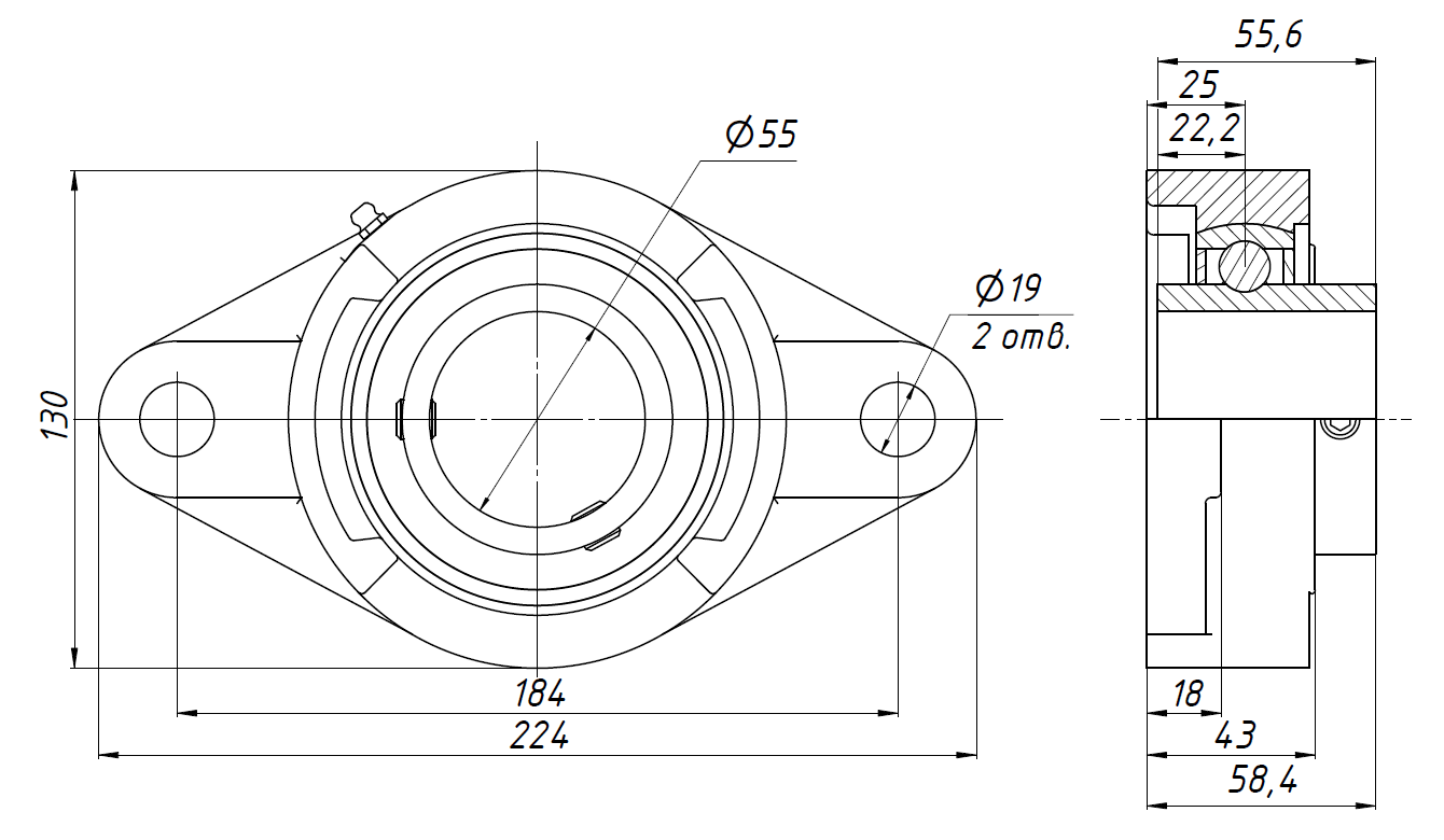 Подшипниковый узел применяется в качестве опоры вращающегося вала. Узел состоит из чугунного корпуса с шариковым радиальным однорядным подшипником. Подшипник в корпусе самоцентрируется компенсируя перекосы и угловые смещения вала. Двустороннее уплотнение подшипника защищает тела качения от попадания пыли, влаги и других абразивных частиц. Для смазки подшипникового узла используется комплектная пресс-масленка. Вал в подшипнике фиксируется с помощью двух установочных винтов.
