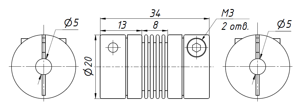 Муфты сильфонные соединительные серии LD сочетают в себе все преимущества мембранных муфт, такие как жесткость и прочность, но при этом они более гибкие и способны компенсировать угловое смещение сопряженных валов до 2°. Радиальное смещение валов может достигать 0,15 мм.