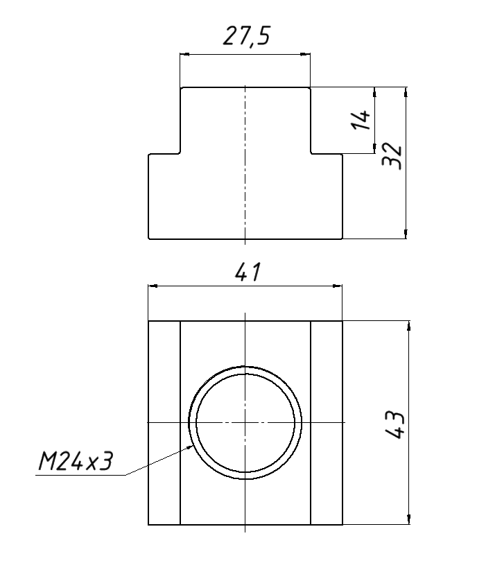 Сухарь для Т-образных станочных пазов. Шпилька М24. Шаг резьбы 3 мм.