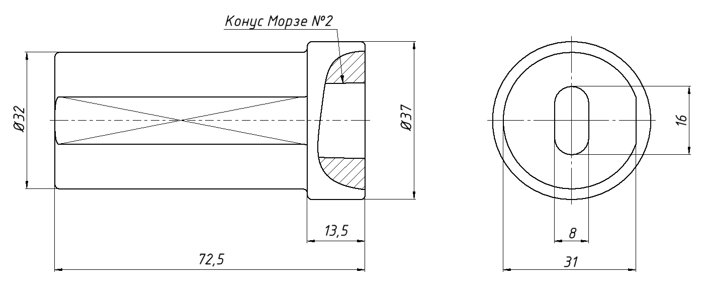 Втулка переходная предназначена для фиксации инструмента с коническим хвостовиком в патроне, предназначенном для фиксации цилиндрического хвостовика. Используется для перехода с хвостовика диаметром 32 мм на конус Морзе №2.
