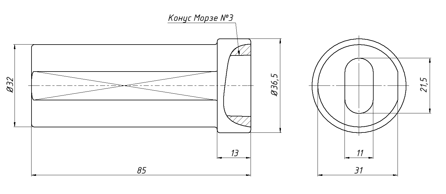 Втулка переходная предназначена для фиксации инструмента с коническим хвостовиком в патроне, предназначенном для фиксации цилиндрического хвостовика. Используется для перехода с хвостовика диаметром 32 мм на конус Морзе №3.