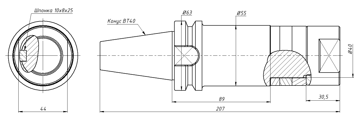 Фрезерный патрон BT-SCA предназначен для надежного центрирования и фиксации дисковых фрез. Крутящий момент передается при помощи шпонки.